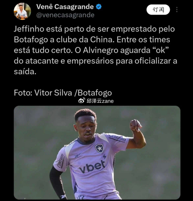 目前,巴西权威记者已经确认,年仅26岁的他将首次来到中国效力,而且只会租借加盟,可以减少中超俱乐部的开支,相信这也是新赛季中超最大手笔的引援之一了,这位速度和过人能力兼具的“巴西登贝莱”,新赛季在中超的表现非常值得期待了!(老邱)